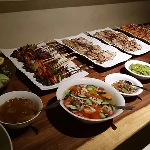 The kitchen amenities feature a refrigerator, provided in a dining area. The restaurant Agung Bangkok is located a 6-minute walk away and serves Thai dishes.
